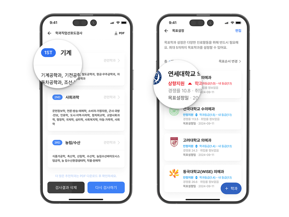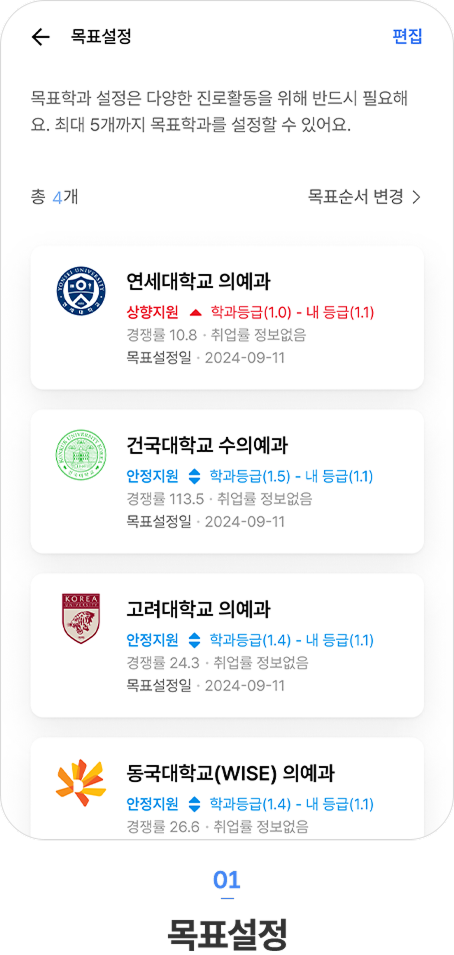 원하는 대학교와 직업을 탐색하며 주도적으로 목표를 정할 수 있습니다