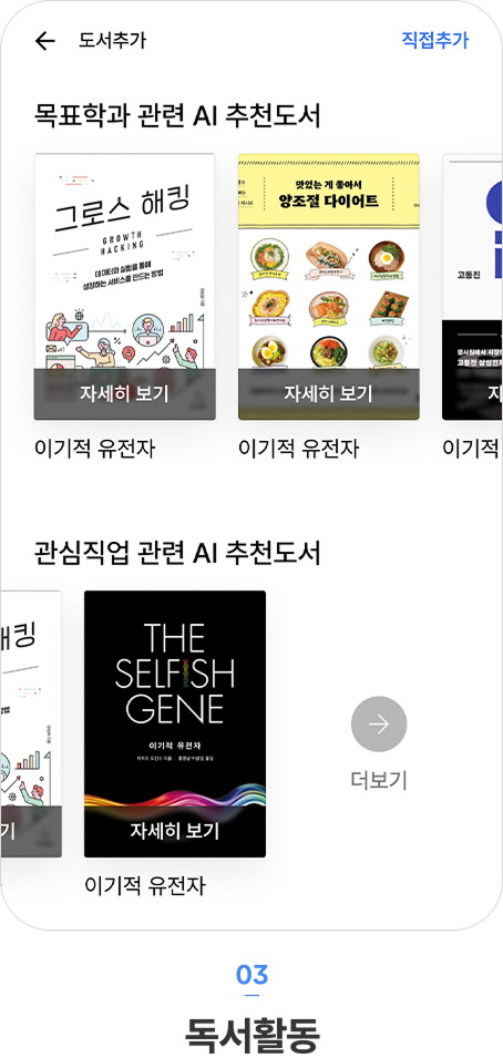 추천도서를 읽고 보고서를 작성하며 관련된 교과 활동까지 계획할 수 있습니다
