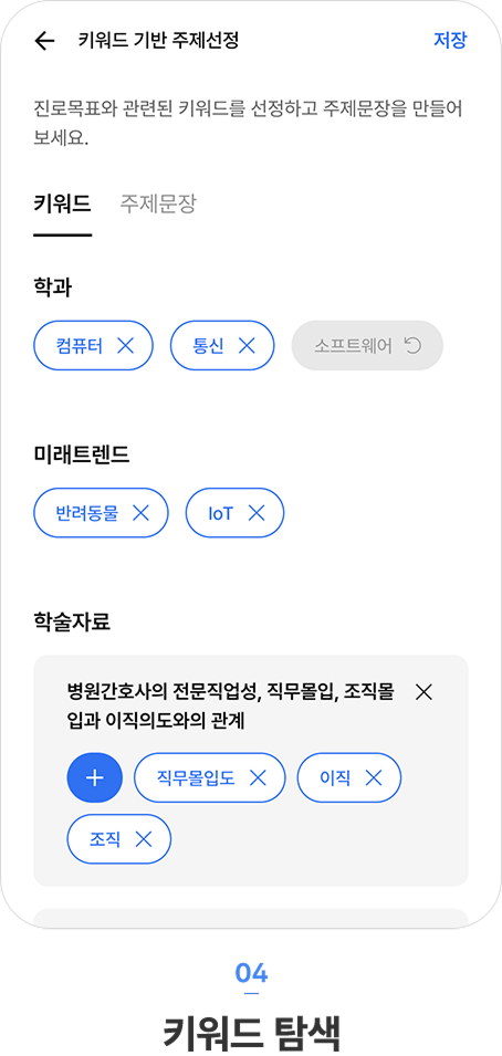 주제탐색을 위한 나만의 차별화된 키워드를 설정할 수 있습니다